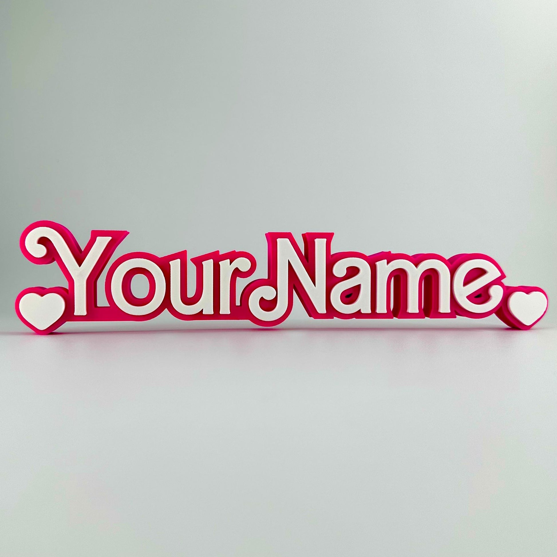 Add a touch of playful glamour to any space with this personalised pink nameplate. Designed in a flowing, retro doll-style script, the white raised lettering stands out beautifully against the vibrant pink base. It’s a fun and eye-catching piece that looks great on shelves, desks, dressing tables or display areas.